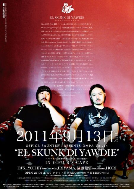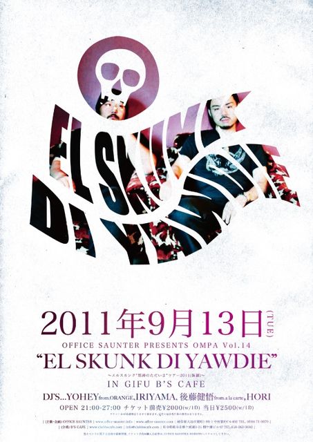 EL SKUNK DI YAWDIE、実に2年ぶりの来岐です!!