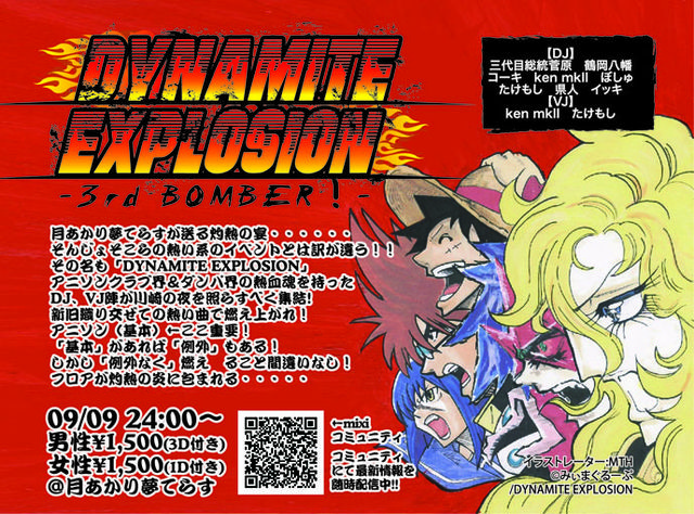 (腐)女子優遇のイベントをやっている○ッキは考えました。 ○ッキ「世の中女子ばっかり優遇されてるな・・・・・。優遇した張本人だけれどもwwwwwwwww ドゥフwwwwwwwwwwwあれ?じゃあ男子も優遇すればよくね?ウハwwwwwwwwwww俺 天才杉wwwwwwwwwwワロリッシュwwwwwwwwwwwww」 と、いうわけで DYNAMITE EXPLOSIONは熱く燃え滾る「男子」の味方じゃい宣言! 男子はなんと1,500円で3Drink!!! 熱くて乾いた喉も、叫んで枯れた喉も これでもう大丈夫!!! DYNAMITE EXPLOSIONは熱く燃え滾る「男子」の