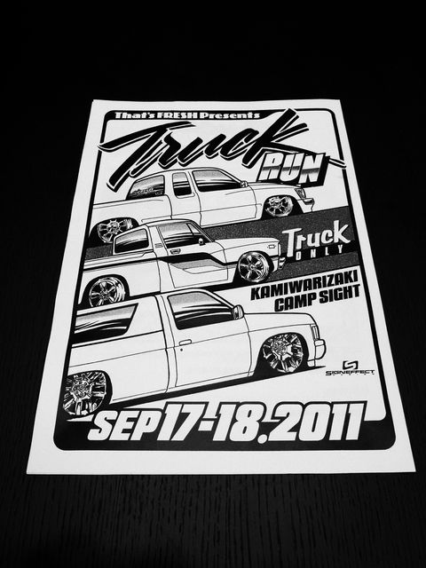 『Truck RUN』 ・9月17日(土)17:00〜(キャンプ) ・9月18日(日)9:00〜15:00(カーショー) ・会場:宮城県 南三陸町 志津川 神割崎キャンプ場 ・内容:トラックオンリーのショー&スワップミート&ビンゴ ・入場: 無料 ・エントリーフィー: A)会場のキャンプ場を利用し17日から宿泊参加 B)18日のショーのみ参加 A) 大人5000円/一人 車両エントリー代&キャンプ場使用料 大人2000円/一人 キャンプ場使用料 *テ