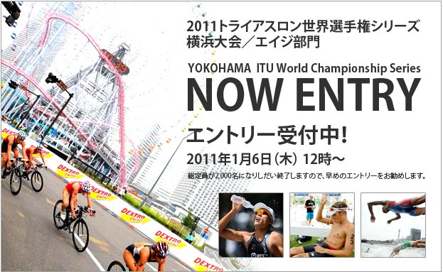 重要 参加意思確認アンケート及び参加費返却受付の申請期限が6月3日までとなっております。 2011トライアスロン世界選手権横浜大会(エイジ) 震災の影響で延期となっておりましたが、無事に開催日が決定しました。 参加予定の方、引き続き情報交換にご利用ください 大会ホームページ↓ http://yokohamatriathlon.jp/index.html 延期後、さまざまな情報が更新されております。 今一度チェックし、当日に備えましょう