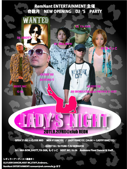 / LADY \500 with 1D (0:00am以降 \1,000 with 1D)