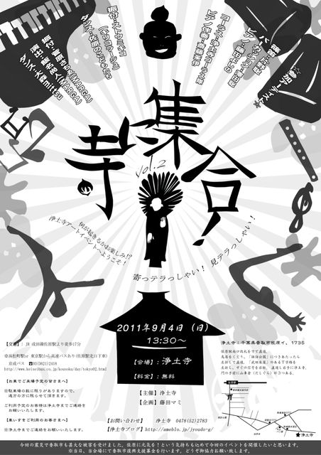 紫雲山浄土寺主催のイベント 「寺に集合vol,2」 ダンス×篠笛×パーカション×ピアノ×子供たちのダンス 何が起きるかお楽しみに!?浄土寺のアートイベントへようこそ! 寄っテラっしゃい!見テラっしゃい! 主旨・参加者の詳細はこちら ↓ http://ameblo.jp/jyoudo-g/entry-10948436996.html 開演時間:13:30 入場料:無料 場所:香取市佐原イ1735 浄土寺本堂