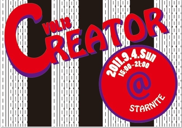 管理人様,告知失礼します. 今週の日曜日の昼から千葉STARNITEで「CREATOR vol.18」をやります! 詳細を是非チェックしてください! ☆CREATOR18☆ 9/4(Sun) @千葉STARNITE 15:00〜21:00 DAY:\2000/1d W/F:\1500 /1d 近年進化すると共に分離しつつあるHIP-HOPの要素。 進化した今だからこそもう一度歩み寄り再認識しよう! 全て共存していたかつてのパーティーはどんなだっただろう・・・? そして今だから出来る事はなんだろう・・・? 古き良きを敬いながら新しいものを探しに行こう!! ◆Dance show