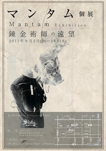 マンタム個展 「 錬金術師の遠望 」 http://sipka.jugem.jp/?eid=50 2011年9月2日(金)〜9月28日(水) 12:00〜21:00 火曜定休 ※最終日は20時までの営業となります。 @Sipka http://sipka.jp/ mixiコミュニティ http://mixi.jp/view_community.pl?id=5357720 愛知県名古屋市中区大須二丁目14番地3号エビスビル2F ※大須観音駅1,2番出口より東に徒歩5分 【『ガランドウのカラダとそれが紡ぎだす夜について』に寄せて 】 『 アウトローブラザーズ 』 上野の骨董市で一際目を引く「アウトローブラザーズ」と名打たれた骨