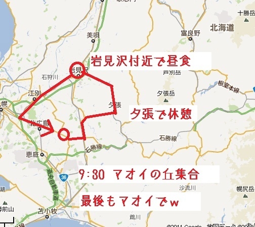 ドラスタミーティング中止残念でした(´・ω・`) 期待してくれて、参加表明してくれた方、 中止なのに、集まってくれた方、 皆様本当にありがとうございました!ヽ(゚∀゚)ノ というわけで、そのウサをぶつけてみませんか?(゚∀゚)ww ドラスタミーティングリベンジ!ww コース詳細は地図参照でお願いします(´∀`)w 9:30 マオイの丘集合 10:30 夕張あたりで休憩予定 12:00 岩見沢あたりで昼食 時間によりコースを考えながら、 またマオイに戻ってきて解散。 今回は慣れてない人も参加しやすい