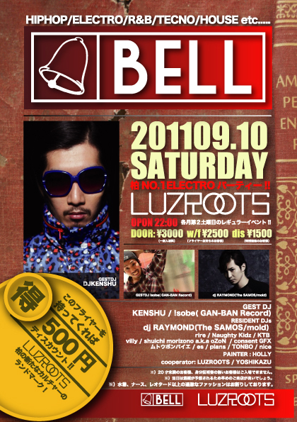 管理人様失礼いたします! 千葉&柏NO1エレクトロハウスパーティーBELLが今週土曜日です 今回は3人のゲストDJ ★DJ KENSHU★ ★DJ !SOBE★ ★DJ RAYMOND★ フェスやドミューンで大活躍の3人が集結 各djの動画をご覧ください まさに屋内フェスのような空間になります ディスカウントもまだありますのでメッセくださいね *このミクシーはお店のアカウントになりますのでご心配なく、気軽にメッセージください