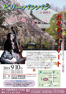 出演:ビリーバンバン 料金:4,500円(全席自由) 参考:http://tozenji.sakura.ne.jp/event.html 問合:ユニバース TEL(047)349-5323 ■延期■ 2011.04.02⇒2011.09.10