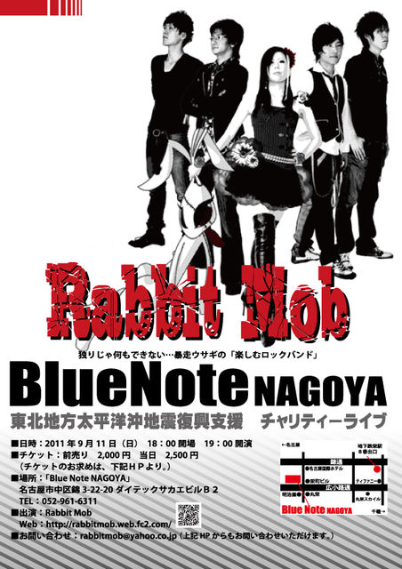 ブルーノートLIVEの詳細が決まったよ★ 2011年9月11日(日) 名古屋BlueNoteにてワンマン! 東北地方太平洋沖地震復興支援 チャリティーライブ 場所:名古屋BlueNote (URL:http://www.nagoya-bluenote.com/index.html ) 時間:開場 18:00 開演 19:00 チケット: 前売り 2,000円 当日 2,500円 (全席指定) チケット予約はHPより行えます★ 初ワンマンがブルーノートとかwwwwwwww ラモブの曲でブルーノートとかwwwwwwwwwwww ・・・・・しかもチケット2