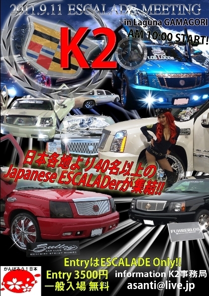 管理人様 貴重なスペースお借りいたします。 イベント告知させて頂きます。 もし、不適切で有れば削除の方よろしくお願い致します。 キャディラックエスカレードオーナーの集い。ミーティングを行います。 西は関西、東は関東から大勢のエスカレードオーナーの方々が集結致します! その数6月の時点で30台弱のオーナー様より前向きなお答えを頂いており、その風景は圧巻なものでしょう… 参加条件はキャディラックエスカレードオーナーであることのみです! 私のようなノーマルな方も楽しめるの