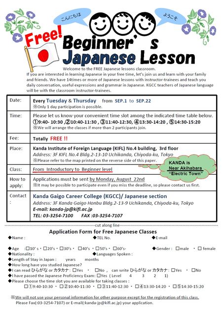 for foreign people living in Tokyo or nearby as attached leaflet.