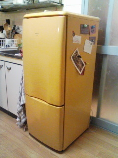 ナショナルの黄色の冷蔵庫です。 NR-B14BA 01年製 代田橋駅近くへ、4日以降のの20時30分以降に取りに来てくれる方。 3000円です。 一番早く取りに来てくれる方にお譲りします。