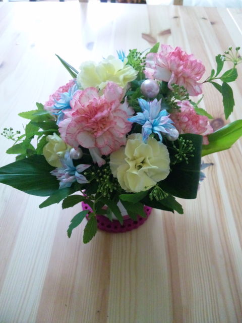 はじめまして 松戸市で8ヶ月の娘のママをしています この度、自宅でお子様同伴で参加できるフラワーアレンジメント教室を開催いたしますのでこの場をお借りして告知させていただきます 今回は敬老の日のギフトにもぴったりなフラワーアレンジギフト(生花)を作ります また、ギフトではなく自宅用に作っていつもの生活にちょっとお花をプラスしてみませんか? 初心者でも簡単に作れます 日時 9月15日(木)10時〜12時、15日(土)14時〜16時、22日(火)10時〜12時 ※1レッスン約1時間半+お茶タイム