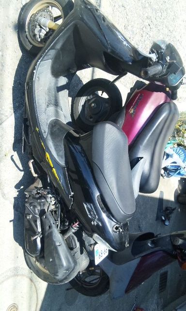 ・メーカー名:ホンダ ・車名:ライブディオZX ・年式:不明 ・車体番号:AF35 ・2st/4st:2st ・排気量:49cc ・色:黒 ・自走:可能 ・走行距離:不明 ・車検/自賠責の有無:24年の2月まで ・事故歴:不明 ・キズや不具合の有無: 外装割れ、バッテリー上がり、メットインの鍵無し、メーター動かない、メットイン割れ、クランクベアリング ・カスタム箇所や装備: ・グリップヒーター ・メッキサスペンション ・ケツアケ3cm ・クリアレンズ ・CDI ・プーリー ・ロンホイ15cm ・アクセルワイヤーとホース類ロンク