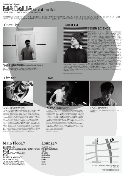 やりきれないサラリーマン。地元名古屋にて1992年からレコード収集を開始。懲りずに今でもオールジャンルにレコード収集を継続中。2006年、「真夜中のオアシス」をスタート。DJやるなら盛り上げてナンボという信念をもって挑むが大体テンバッてからまわりするDJプレイがいつも見せどころ。思いつきでMIX