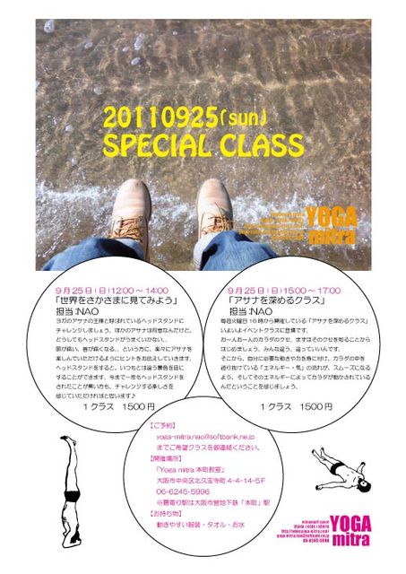 ○シルバーウィークイベントクラス開催のお知らせ○ 貴重なスペース いつもありがとうございます。 9月も半ばになりますが、まだまだ暑さ厳しい毎日が続きますね。 風の匂いや空の表情は秋を感じさせてくれています。 9月の連休を利用して、mitraでもイベントクラスを開催いたします♪ 今回のイベントクラスにはテーマを設けました。 ひとつは「チャレンジする」 もう一つは「自分を深くみつめる」 です。 いつものクラスのように、ポーズをするする続けていくようなクラスではなく、 ひとつのポーズをより丁寧に見直すこと