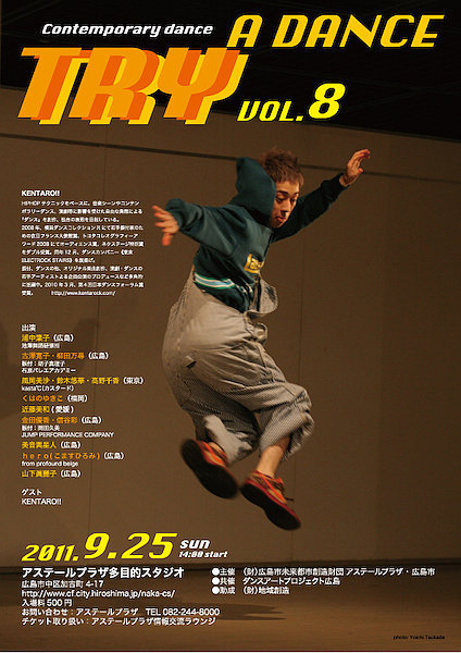 KENTARO!!が9月に広島に出現いたします 『TRY A DANCE VOL.8』のゲストダンサー 会場 アステールプラザ多目的スタジオ (広島市中区加古町4番17号) 9月25日(日) 14時〜 料金500円 問い合わせ 082-244-8000 naka-cs@cf.city.hiroshima.jp お近くにお住まいの方は是非
