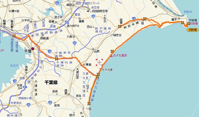 今年の関東ツーリングは、震災の影響やら輪番休業の影響やらで開催するタイミングがなかったんですけど、 今年最初で最後(?)のツーリング企画します。 震災以来ってことで、東の海の様子でも見に千葉の犬吠埼へ行きます。 ■予定ルート 湾岸の幕張PAに集合して、千葉東金道路で野呂PAへ (湾岸か京葉かは、参加者によって調整可能。  アクアライン経由の人は、千葉東金道路の野呂PAで待ち合わせましょう) 九十九里有料道路で海にて南下して一宮PAでUターン 不動堂IC近くのばんやで昼食 http://www.99banya.com/ 道