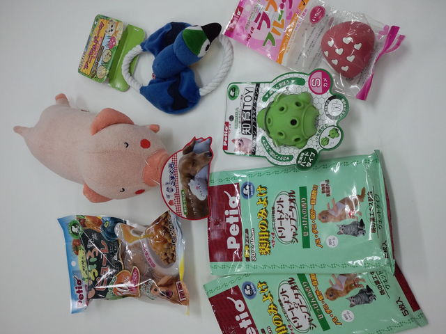 いつもお世話になっています。 懸賞が好きなので、懸賞で当てた★ぺティオのワンちゃんグッズ★を 1名様にお譲り致します。 ※送料はご負担ください。 【入ってるもの】 ●あごまくら 安眠ブタ 定価480円 ●ラブフルーツ いちご 定価268円 ●知育トイ カメ(Sサイズ) 定価598円 ●アニマルパーク インコ(Sサイズ) 定価498円 ●のみよけトリートメント  シャンプータオル(5枚入り)  定価399円×2個 ●いろいろ野菜ピューレ   定価238円 合計7点  合計2880円 【募集期間】 ●10/20〜10/23まで