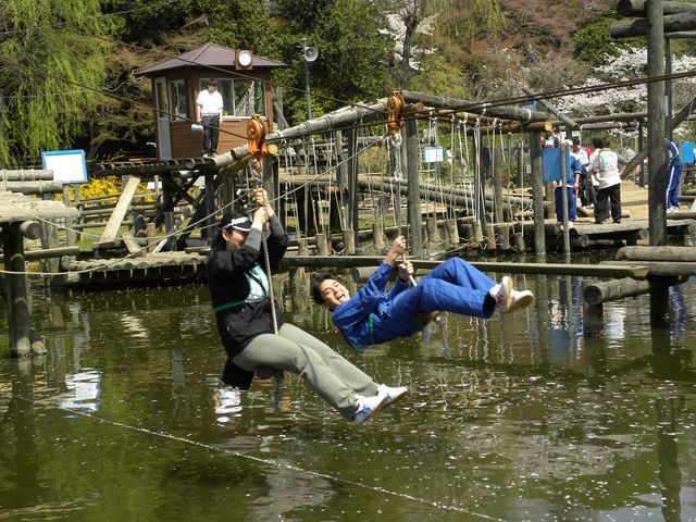 清水公園フィールドアスレチック http://www.shimizu-kouen.com/bouken/field.html 夕刻は少し寒いことが予想されますが、アスレチックプレイ中は多分寒くないです。 Let's enjoy トレーニング! いつもすいません、以下、ほとんどコピペ。 結構ハードです。 水上コースでは、トライに失敗すると池にぽちゃんです。 池は足着かないとこもあります。(というか着くところあるのか) 昔あった風雲たけし城みたいなコースを進みます。今で言うサスケ? 3コースあって、全部回るには半日かかります。 手袋ないとマメできる可能