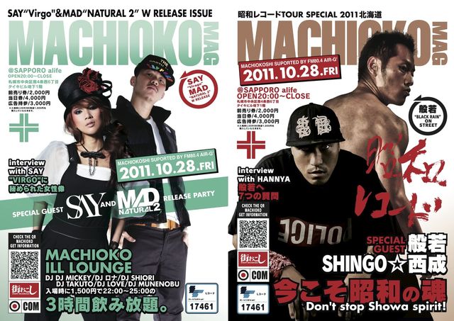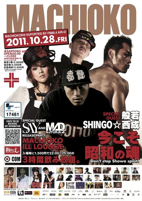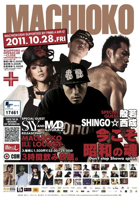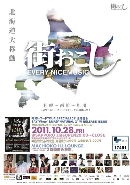 管理人様告知失礼します。 今こそ昭和の魂。 沢山の皆様のご協力により、札幌はもちろん、旭川・函館・帯広・北見など道内各地で開催し、音楽好き、お酒好き、お祭り好きの方々と、その土地土地の楽しみ方、盛り上がりを見せております『 街おこし 』。 10月度は、札幌―函館―旭川を、 極東最高峰MCと名高く2011年3月11日の東日本大震災の際には、 復興応援ソング“何も出来ないけど”を発表し、NEW ALBUM“BLACK RAIN”も大好評な 【 般若 】(ハンニャ)と、 大阪西成地区のラッパーであり、今も炊き出しにも参加し人々に力を与えてい