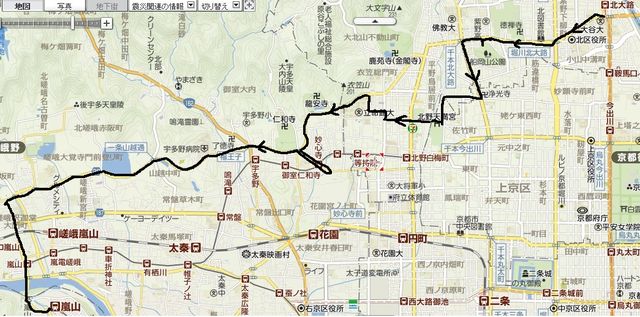 ◎京都市北部、西陣・衣笠・御室・嵯峨野界隈を巡る徒歩ツアー 伝統と革新、保守と進取、そして、都市と郊外が同居する街、京都。 京都市北部を歩いて回るコースです。 市街地から出発し、コース序盤・中盤は歴史ある寺社を、コース終盤では京都市の風致地区に指定される日本の原風景を回ります。 距離:約16km コース:北大路〜船岡山(T)〜北野天満宮〜平野神社〜旧衣笠球場跡(T)〜妙心寺(T)〜仁和寺(T)〜福王子〜広沢池〜嵐山 ※(T)はトイレの存在が確認済みです。 ※時間の都合によって、ショートカットする場合があります。