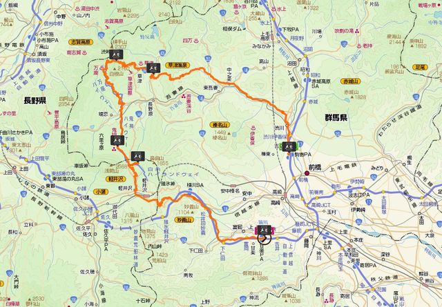 10月2日に軽井沢へツーリングしませんか? 1.ルート http://drive.yahoo.co.jp/map/RTt.XYh.bWOJCq2fgf1w--/detail 上記ルートを見れない方は写真を見てください。 2.集合時間・場所 集合場所:関越自動車道 駒寄PA 集合時間:午前9時 3.注意事項など 標高が高い場所があるので寒く無い服装で 2stということで予備のオイルや簡単な工具、プラグなど準備しておくと良いと思います。 気楽なツーリングですので初めての方も是非ご参加ください
