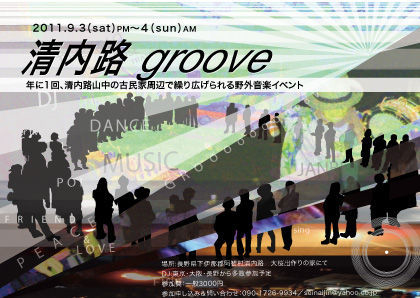 当初9月3,4日開催の予定でしたが、台風の影響により10月1,2日に延期して開催となりました。 ■■ 清内路groove 〜古民家空間を遊び倒す〜 ■■ 阿智村清内路の山奥で、音楽と、人との出会いと、清内路の食べ物・自然を堪能する非日常古民家空間。 村の人たちとも語り飲み一緒に踊っちゃいます。 【予定している内容】 ◎オープニングから夕方にかけて ・自己紹介 ・踊る場所、会場の開墾 ・DJブース設営 ・薪作り ・その他諸々会場設営 ◎夕方以降 DJが音楽を流し、巨大な焚き火が出現。出来上がった空間で『踊る』