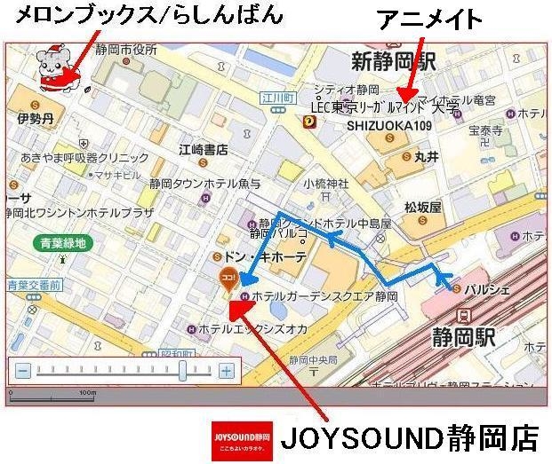 2011年10月期オフを、今回は初の試みとして『富士市』で行います。 まだ様子見ですが、今後は沼津開催と富士開催を交互に行うことになろうかと思います。 どんどん参加していってください! ◆日時 2011/10/1(土曜) 12:30〜18:50(12:00には集合して下さい) ◆会場 カラオケメガトン 本吉原店(富士市今泉1丁目17-41-2F) 地図 http://joysound.com/ex/shop/room/_shop_13028_map.htm http://rp.gnavi.co.jp/1082544/map/ ◆集合場所について ・12:00までに現地横の駐車場に集合、 ・11:40までにJR富士駅前に集合。