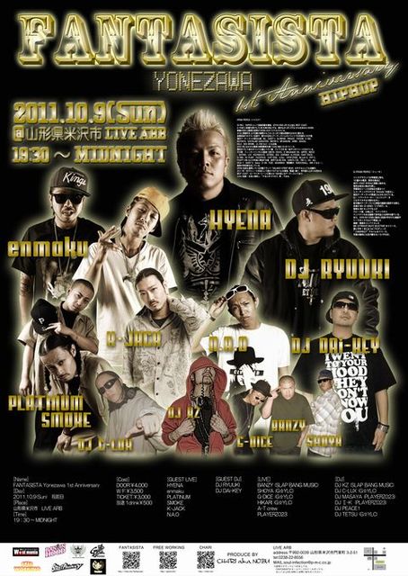 告知失礼します。 VIBES UP!×RUB A DUB LINX 10月8日米沢に爆笑が起こる! 米沢VIBES UP!と山形RUB A DUB LINXとのコラボレーションでスペシャルです! Special guestにROAD TO レゲエ祭2011 決勝進出、レゲエ界が生んでしまった最低で最高のオバカルテット笑連隊! そしてもう一人!ROAD TO レゲエ祭2009チャンピオン、粋でいなせなファンタジスタ系技巧派レゲエ・ディージェイ。たなけん! GUESTにROAD TO レゲエ祭2009出場、栃木の産業廃棄物またの名をアウトオブレゲエ“プリンス★ヌマニエル!”板橋のダミアン“発破ZUKIE! 爆笑間違いなし!