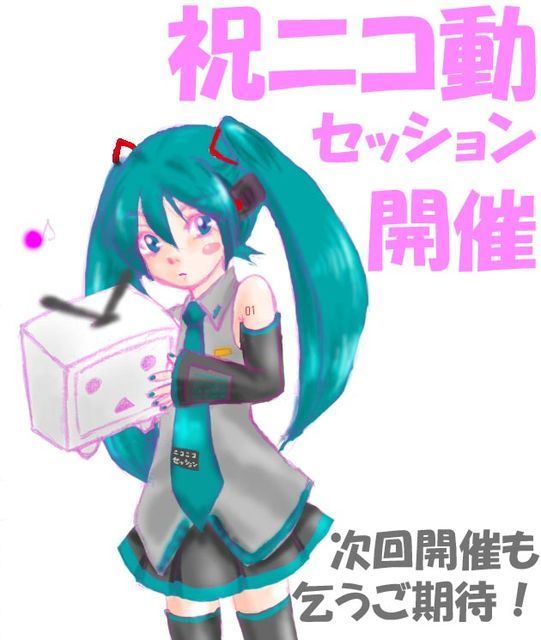東京ニコ動文化祭♪【セッション】 ニコニコ動画で人気の楽曲をセッションしてみませんか?? 生演奏を前で踊ってみませんか?? 生演奏・踊ってみたさんの前で歌ってみませんか?? セッションステージを映像でシンクロさせてみませんか?? 今回見学の方々でも楽しめるコンテンツをご用意★ =============== 今回のイベント内容 ?決め曲セッション 事前にmixi上でやる楽曲を決めておき、セットリストを組んで、LIVE感覚で演奏するセッションです。 ?ニコニコ体育の時間(新企画) ニコ