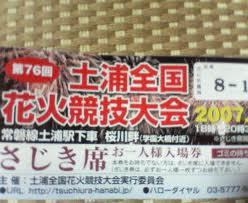 9/29更新 こんにちはミオンです たびぞうさんの長岡花火 ゆたかくんの大曲花火 そして私の片貝花火大会 素敵な企画が目白押しですね! もう一個何か忘れてはないやしないですか?? そう!日本三大花火大会(長岡、大曲、土浦)のひとつの土浦の花火大会です 入場者人数が長岡の倍となりますので、桟敷席を確保しての開催としましょう!! 関東方面の道路はかなり混雑が予想される為、そのままバスで帰っても到着が深夜になるのと、東北地方にお金を落