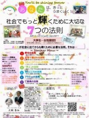 イベント告知、失礼します。 みなさん、こんにちは。 龍谷大学3回生の守谷綾乃と申します! 今日は、私と、友だち、後輩、 そして学生の将来をとても楽しみされている企業さんの 計5人で造っている イベントの紹介をさせていただきます! その名も... 社会でもっと輝くために大切な7つの法則〜女子限定セミナー(*^_^*)〜 大学生活をそれぞれ楽しんでいるみなさん。 社会に出てもきらきらしてほしい!そんな気持ちで造っています。 社会ってどんなの? 悩みや不安があるんやけど。 今回のイベントは、み