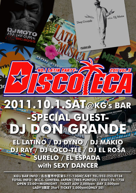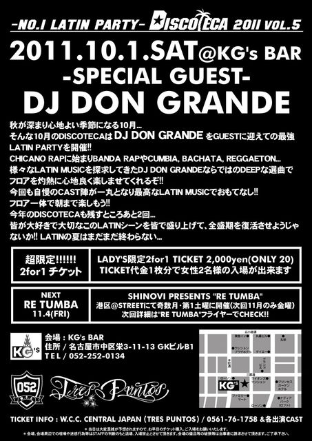 秋が深まり心地よい季節になる10月... そんな10月のDISCOTECAはDJ DON GRANDEをGUESTに迎えての 最強LATIN PARTYを開催‼ CHICANO RAPに始まりBANDA RAPやCUMBIA, BACHATA, REGGAETON... 様々なLATIN MUSICを探求してきたDJ DON GRANDEならではの DEEPな選曲でフロアを灼熱に心地良く楽しませてくれるぞ‼ 今回も自慢のCAST陣が一丸となり最高なLATIN MUSICでおもてなし‼ フロア一体で朝まで楽しもう‼ 今年のDISCOTECAも残すところあと2回... 皆が大好きで大切なこのLATINシーンを皆で盛り上げて、 全盛期を復活させよ