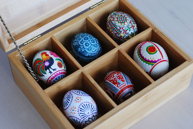 <東欧イースターエッグの世界展> ドイツ・ポーランド・チェコ・ウクライナ・ルーマニア・リトアニア・・東欧各6カ国24種類の伝統的なイースターエッグを展示・販売します。ろうけつ染め、レース編み、切り絵、エッチング、刺繍模様、ビーズや陶器などなど、様々な装飾方法で彩られたタマゴは各地域、村々の民芸文化の結晶です。きっといままで見たことのない、美しく神秘的なイースターエッグの世界がひろがります。 全てのイースターエッグは販売しています。全て手作りで違うモチーフ、違うデザインです。手にとってじっくりご覧ください。