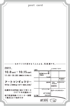 ojiya3回目の展示会を行います。 タイトル-------ojiya書店(展)〜本屋さんのような写真展〜 内 容-------本屋さんの様なディスプレイで、写真 を手に触れて楽しむことができます! 是非!長居して立読み、立見して下さい! 場 所-------ART-MANgallery 北海道札幌市中央区南4条東4丁目1−4 日 時-------2011/10/8(sat)~10/15(sat) AM:11:00~PM:19:00の8日間 最終日はPM:18:00まで! メンバー一同展示会場にてお待ちしております!
