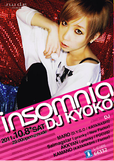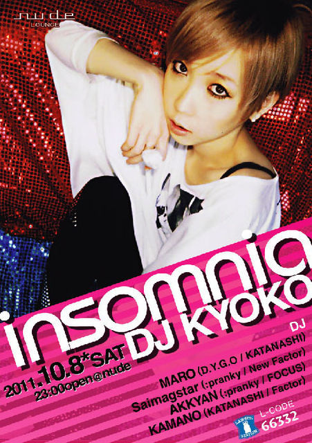 ¢££±£°·î£¸Æü(ÅÚ) £é£î£ó£ï£í£î£é£á -DJ KYOKO @ nude- ¢ö¡§HOUSE GUEST¡§DJ KYOKO GUEST DANCER¡§ROBIN DJ¡§KAMANO / AKKYAN / Saimagstar / MARO TIME¡§23:00open PRICE¡§Adv2,000yen / Door2,500yen LAWSON TICKET CODE¡§66332