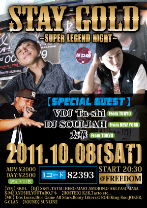 そして日本最高峰HUMAN BEAT 太華 From TOKYO がこの10月8日STAY GOLD ~SUPER LEGEND NIGHT~その名にふさわしい伝説な夜が@FREEDOMにて開催!!