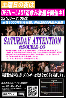 ÅÚÍËÆü¤ÎÌë¤Ï¡ª OPEN¡ÁLASTËø°û¤ßÊüÂê¤ò³«ºÅÃæ¡ª 22¡§00¡Á2¡§00Ëø ÃËÀ£²¡¤£µ£°£°±ß¡Ê°û¤ßÊüÂê¡Ë ½÷À£±¡¤£°£°£°±ß¡Ê°û¤ßÊüÂê¡Ë »Í¹ñºÇÂçµé¤ÎCLUB,¥À¥Ö¥ë¥ª¡¼¤Ï¸µµ¤¤Ê½÷¤Î»Ò¤ò±þ±ç¤·¤Þ¤¹¡ª¤½¤Î̾¤ÎÄ̤ꡦÃí°Õ¤¹¤Ù¤¥ª¡¼¥ë¥ß¥Ã¥¯¥¹¥Ñ¡¼¥Æ¥£¡¼¤Ç¤ªÆÏ¤±¤·¤Þ¤¹¡£ ½÷À¤Ë¤â¿Íµ¤¤ÎHip-Hop,R&B¤Ê¤É¥»¥ì¥Ö¥Ò¥Ã¥È¤«¤éή¹Ô¤ÎHOUSE MUSIC ±ýǯ¤ÎDISCO¥Ò¥Ã¥È¤«¤é¥í¥Ã¥¯¤ä¥Ý¥Ã¥×¥¹¤Þ¤Ç¤ò¥¯¥í¥¹¥ª¡¼¥Ð¡¼¤µ¤»¤ë ¥À¥Ö¥ë¥ª¡¼¤«¤éÀ¸¤Þ¤ì¤¿ºÇÀèü¥¹¥¿¥¤¥ë¡£ ¥Õ¥í¥¢¤Ç¤Ï¿ºÌ¤Ê¥²¥¹¥ÈDJ¤¬À¹¤ê¾å¤²¤Þ¤¹¡ª OPEN/22:00/LAST/2:00 ½÷À1000±ß¡Ê°û¤ßÊüÂê¡Ë ÃËÀ250