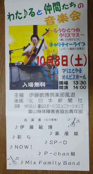 施設の子供たちや、ご高齢の方々をスポーツ観戦にご招待するための募金ライブです。