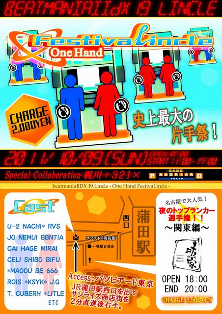 お久しぶりです 私が主催した片手三昧以来2年前ぶりの書き込みになります その時でも片手界は元気が無いと言われてましたが今はもっと元気無いです サブでやったら上手くなったりプレイヤーの数は増えてますが交流する機会が無いだけの様な気もします 細々とした業界なので仕方無いかもしれませんがもっとメジャーでも良いと思います 片手三昧で増えた交流はまだ現在進行形で繋がってますし当然前回のTHE ONE HAND FIGHTERS 2010から増えた交流も現在進行形で