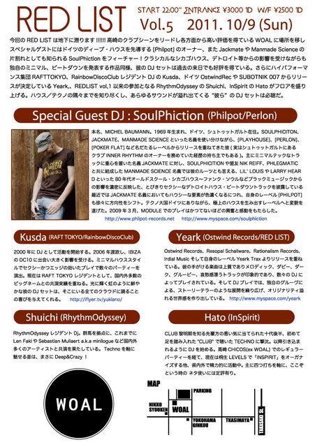 高崎のクラブシーンをリードし各方面から高い評価を得ているWOALに場所を移し、スペシャルゲストにはドイツのディープ・ハウスを先導する[Philpot]のオーナー、またJackmateやManmade Scienceの片割れとしても知られるSoulPhictionをフューチャー!