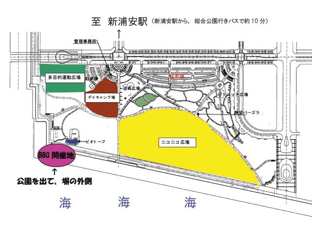 〜BBQ会場変更のお知らせ〜 急に申し訳ありませんが、BBQ 当日に浦安市の復興祭と重なり、車両・通行規 制、また駐車場の利用も出来ない為、会場を変更する事となりました。 ご迷惑おかけして申し訳ありませんが、よろしくお願いします。 開催日:10/10 (月) 祝日 12pm〜 会 場: 高洲海浜公園 SeaSide (千葉県浦安市高洲 9-2) 新浦安駅から、15・25・28系統のバスで、高洲海浜公園下車。 公園の入口より海に向かって、公園外の左に進んだあたりです。 お待ちしてまーす!!!