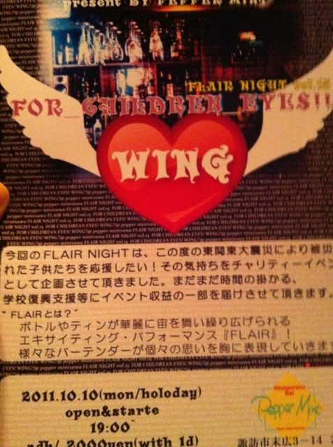 今回のフレアナイトは、この度の東関東大地震により 被災された子供たちを応援したい! その気持ちをチャリティーイベントとして企画させて 貰いました! 参加費2000円!! 前売り券 優先発売中!! お店来てね!!