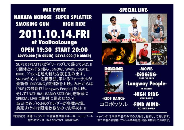 SMOKING GUN〜世界の子どもにワクチンを×〜SUPER SPLATTER x HAKATA NOBOSE x HIGH RIDE
