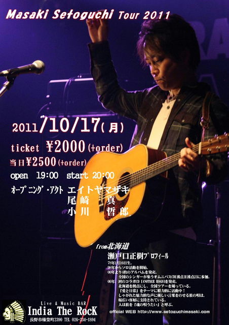 情報をアップしてなかった……………… 今日になってしまった オープニングアクトは・・・・・・ エイトヤマザキ、小川哲郎、尾崎真