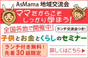 こんにちは!AsMamaの北林と申します。 (http://asmama.jp/) 名古屋でのイベントのご案内ですが、お得に参加できて、とっても好評だったのでこちらでもご案内させていただきます! 実は9/26に第一弾が開催された「こどもと暮らしとお金のセミナー」 プロのファイナンシャルプランナーさんにお越しいただき、家計にまつわるおかねの話しをしていただきます。 普段自分の家のお金のことってプロに聞いてみたいなーと思いながらも、激しく勧誘されそうだわ〜とか、個人情報を渡すのが怖くて、とか言う方も安心です。 AsMamaでは子育てを地域