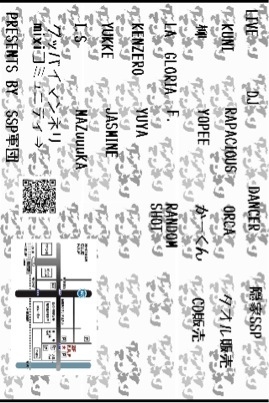 「DRINK OR DIE VOL.10ハロウィーンスペシャル」 BATTLEエントリー状況(10月16日現在) 1.CHIE&DAN(freestyle) 2.カムサハムニダ&未定(break) 3.lady ice&サムバディ(break) 4.タコベル枠 5.タコベル枠 6.Naoki(?) 7.cali&kick(BREAK) ※残り13チーム引き続きエントリー募集いたします。 SHOW CASEエントリー状況 1.3rd Housing Nation(サードホーシングネーション) ※残り2チーム引き続きエントリー募集いたします。 1OR2FREE STYLE DANCE BATTLE!! B−BOY、B-GIRL,他ジャン