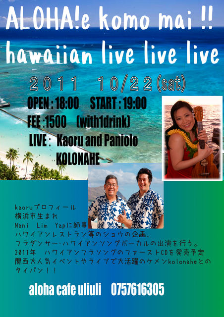 Kaoru and Paniolo and kolonahe 豪華メンバーでのハワイアンライブです!!!
