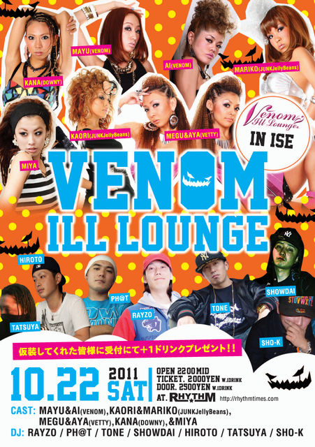 ¤¤¤è¤¤¤èº£·î¤«¤éÂçºå¤Ç¤â¤ÎÀ¨¤¯¿Íµ¤¤Î¥¤¥Ù¥ó¥È¡ª¡ª VENOM¤¬¥×¥í¥Ç¥å¡¼¥¹¤·¤Æ¤ëVENOM ILL LOUNGE ¤Ä¤¤¤Ë°ËÀª¥ê¥º¥à¤Ç¥ì¥®¥å¥é¡¼³«»Ï¡ª¡ª ¤¢¤Î¿Íµ¤¥À¥ó¥µ¡¼¤äDJ¤¬¤É¤ó¤É¤ó°ËÀª¤Ø¤ä¤Ã¤Æ¤¤Þ¤¹¡ª¡ª Í׎ÁŽªŽ¯Ž¸¤Ê½÷¤Î»Ò¤¬¼ç¤È¤Ê¤Ã¤Æ¤ë¥¤¥Ù¥ó¥È¤Ç¤¹¡ª¡ª VENOM¤âVETTY¤â¥Õ¥¡¥Ã¥·¥ç¥ó¤Ï¿Íµ¤¥Ö¥é¥ó¥Ébomdshell¤Þ¤Ç¡ª¡ª ³Ú¤·¤ß¥¤¥Ã¥Ñ¥¤¤Î¥¤¥Ù¥ó¥È¤Ç¤¹ Âè£±ÃÆ¤Ï¥Ï¥í¥¦¥£¥ó VENOM ILL LOUNGE in ISE 2011.10.22 sat ¾ì½ê¡§°ËÀª¥ê¥º¥à MAYU&AI(VENOM),KAORI&MARIKO(J