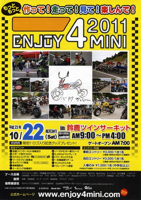 º£Ç¯¤â¡Ö£´¥ß¥Ëº×¤ê¡×¤¬¤ä¤Ã¤Æ¤¤Þ¤·¤¿¡ª ¥¨¥ó¥¸¥ç¥¤£´¥ß¥Ë£²£°£±£±¡¡º£Ç¯¤Ç£³²óÌܤγ«ºÅ¤Ç¤¹¡ª ²Æ¤ËÎ뼯¥µ¡¼¥¥Ã¥È¤Ç³«ºÅ¤µ¤ì¤¿¡ÖÎ뼯£´¥ß¥Ë¥Ñ¥é¥À¥¤¥¹¡×¤È¤Ï°ìÌ£°ã¤Ã¤¿ ¥¤¥Ù¥ó¥È¤Ç¤¹¡£¤â¤Á¤í¤ó¥á¡¼¥«¡¼¥Ö¡¼¥¹¤ÏÍ̾¥á¡¼¥«¡¼¤¬¤º¤é¤ê¡ª ¤Þ¤ë£±Æü£´¥ß¥Ë¤Å¤¯¤·¤Ç¡¢¤ªÊ¢¤¤¤Ã¤Ñ¤¤´Ö°ã¤¤¤Ê¤·¤Ç¤¹¡ª ¥¤¥Ù¥ó¥È¤Î¾ÜºÙ¤Ë¤Ä¤¤¤Æ¤Ï£È£Ð¤ò¸«¤Æ¤¯¤À¤µ¤¤¡¡ http://enjoy4mini.com/ »²²Ã¤µ¤ì¤ëÊý¤ÏÁ°Çä¤ê·ô¤¬¤ªÆÀ¤Ç¤¹¡ª¤â¤Á¤í¤ó¸«³Ø¤À¤±¤â²Äǽ¤Ç¤¹¡£ ¤ß¤ó¤Ê¤Ç¥¤¥Ù¥ó¥È³Ú¤·¤ß¤Þ¤·¤ç¤¦¢ö